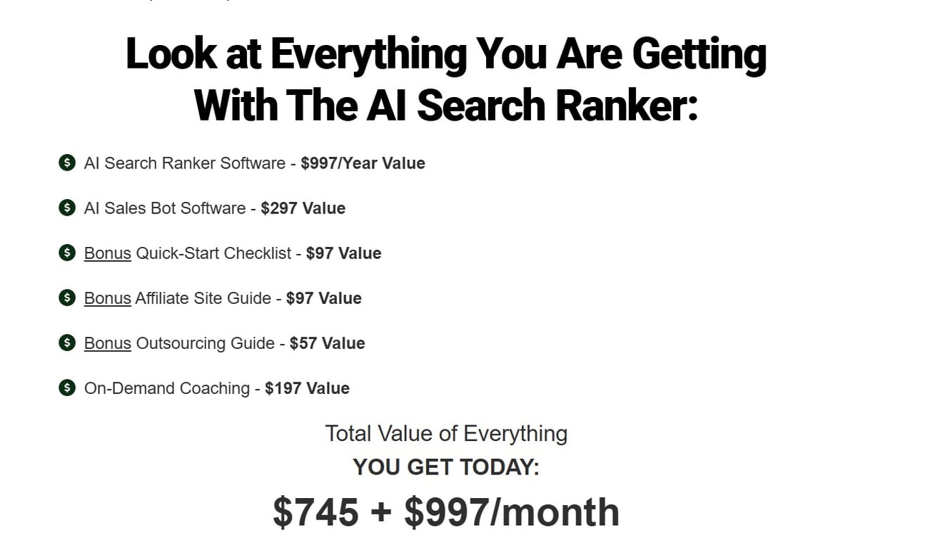 These bonuses make AI Search Ranker not just a tool, but a complete business opportunity.