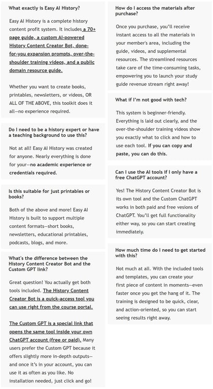 At the heart of Easy AI History is Amy Harrop—an experienced creator and educator who understands the struggles of breaking into competitive digital markets. With years of experience helping content entrepreneurs succeed, Amy saw a gap in the market: history content that’s in high demand, yet underserved. Leveraging the latest AI advancements, she built a solution that removes the traditional barriers of research, writing, and formatting. Her mission is clear—make it easier than ever for creators, educators, and entrepreneurs to generate compelling historical materials with minimal effort and maximum potential.