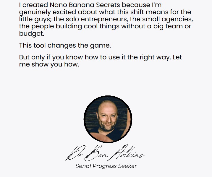 The Nano Banana Secrets Advanced system is more than just a trendy AI tool — it’s a strategic marketing weapon designed to give you an edge in 2025. With its step-by-step guidance, you can generate viral images, build brand recognition, and convert attention into sales faster than ever. Ben Adkins has simplified what once required a full team and a large budget, placing the power of visual marketing into the hands of solo entrepreneurs and small businesses.