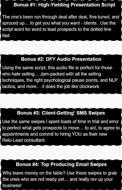Exclusive bonuses – On top of the core training, Relo Rev Up includes limited-time bonuses that add even more value, helping you implement faster and stand out in your market.