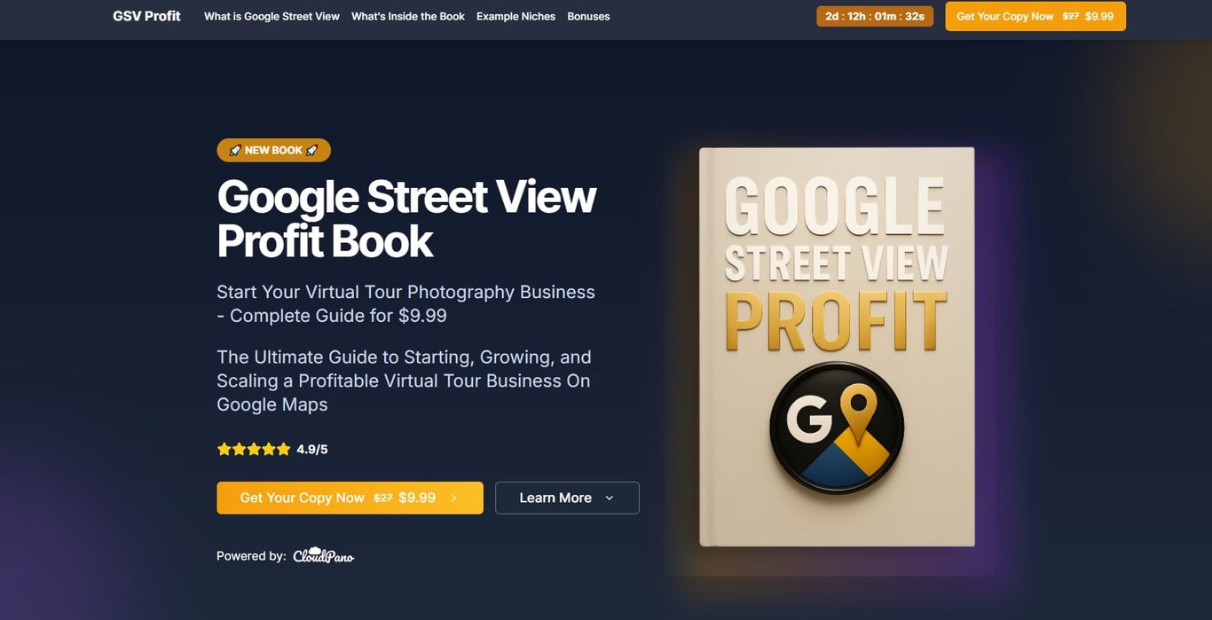 The Google Street View Profit Book is a comprehensive guide that teaches entrepreneurs, photographers, and marketers how to start, grow, and scale a profitable virtual tour business using Google Street View technology. For just $9.99, it delivers actionable strategies, proven sales frameworks, and real-world case studies that empower readers to monetize 360° photography by helping local businesses improve their visibility and engagement on Google Maps.