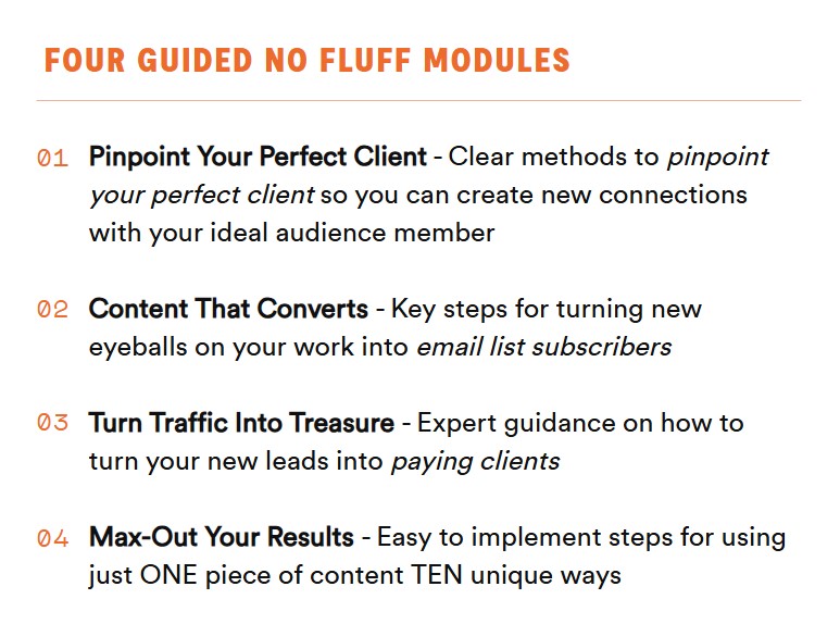 The Pinterest Lab isn’t another surface-level social media tutorial. Instead, it’s a carefully structured program designed to simplify Pinterest marketing into four powerful modules. Each one equips students with actionable strategies that they can implement immediately to see results. Let’s break down what’s inside: