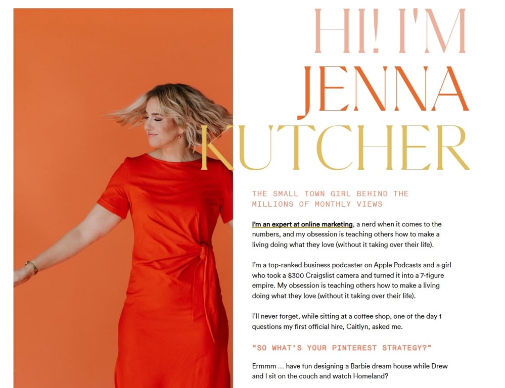 Jenna Kutcher is a self-made entrepreneur, online educator, and host of the highly ranked Goal Digger podcast. Her journey started with a $300 Craigslist camera, which she turned into a seven-figure business empire. Today, Jenna is recognized as a leading voice in online marketing and digital entrepreneurship.