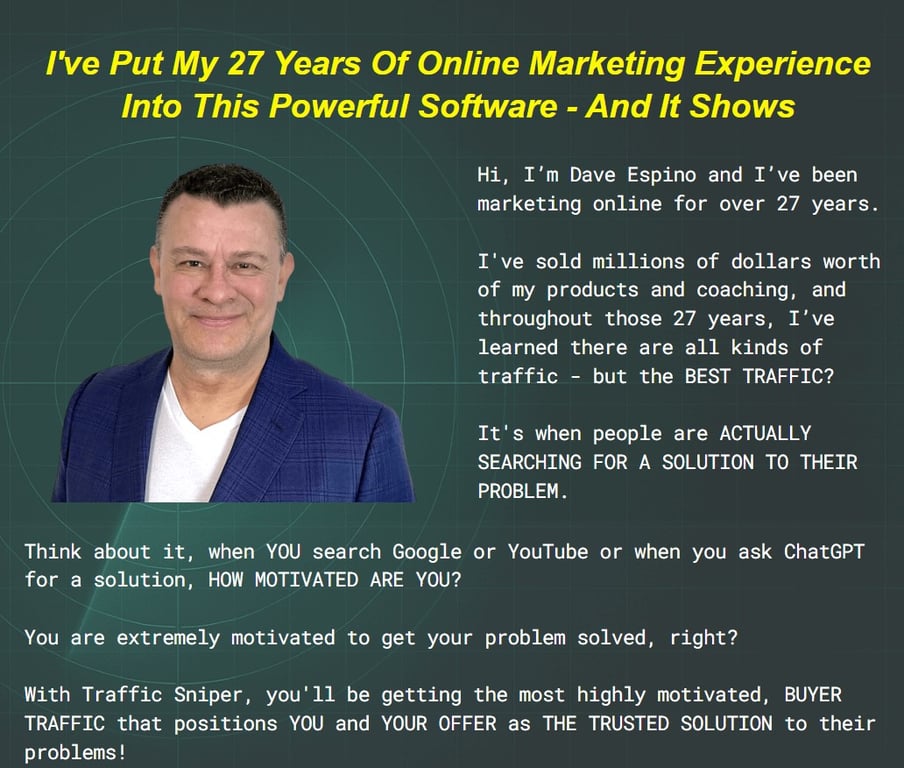Traffic Sniper is more than just another marketing tool — it’s a complete system for hijacking buyer traffic from Google, YouTube, and ChatGPT with sniper-like accuracy. Its low one-time cost makes it an incredible deal compared to overpriced subscription-based platforms. Whether you’re an affiliate, coach, or business owner, this software can help you secure motivated traffic that’s already searching for solutions.